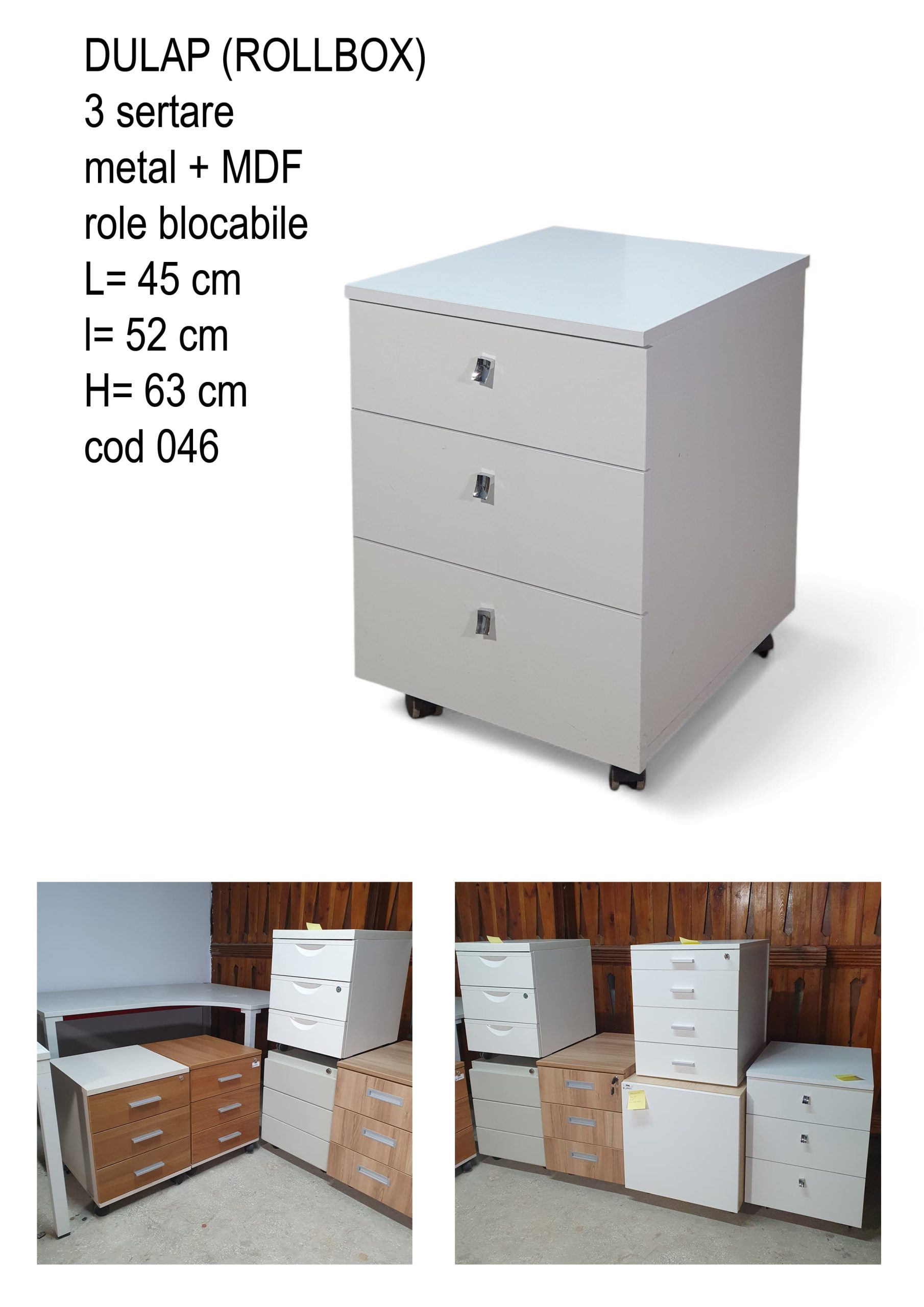 Cele trei sertare spațioase permit depozitarea ordonată a documentelor, rechizitelor sau altor accesorii esențiale. Rollbox-ul este prevăzut cu role blocabile, oferind mobilitate atunci când ai nevoie și stabilitate maximă în timpul utilizării.