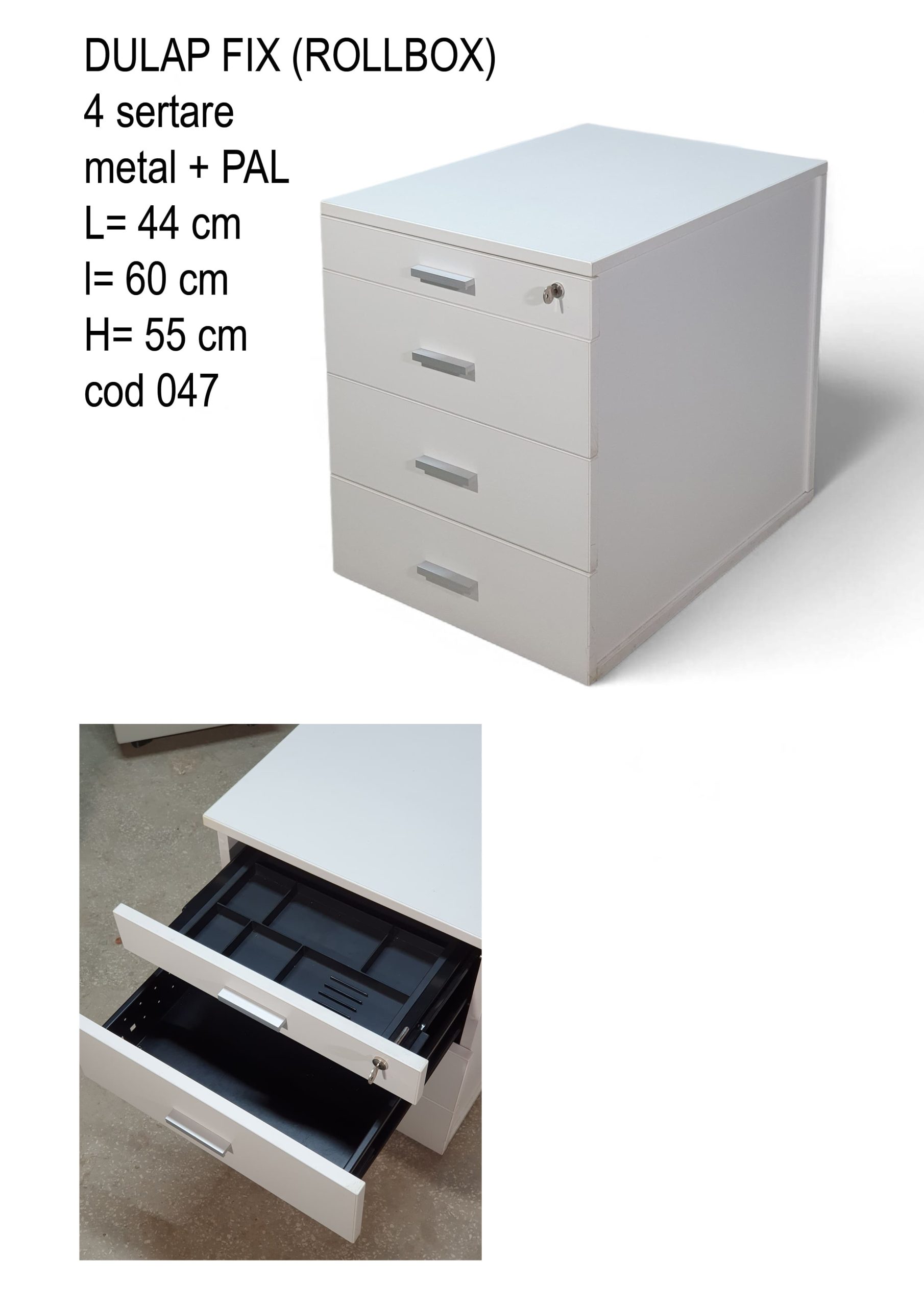 Rollbox,dulap fix alb cu sertare