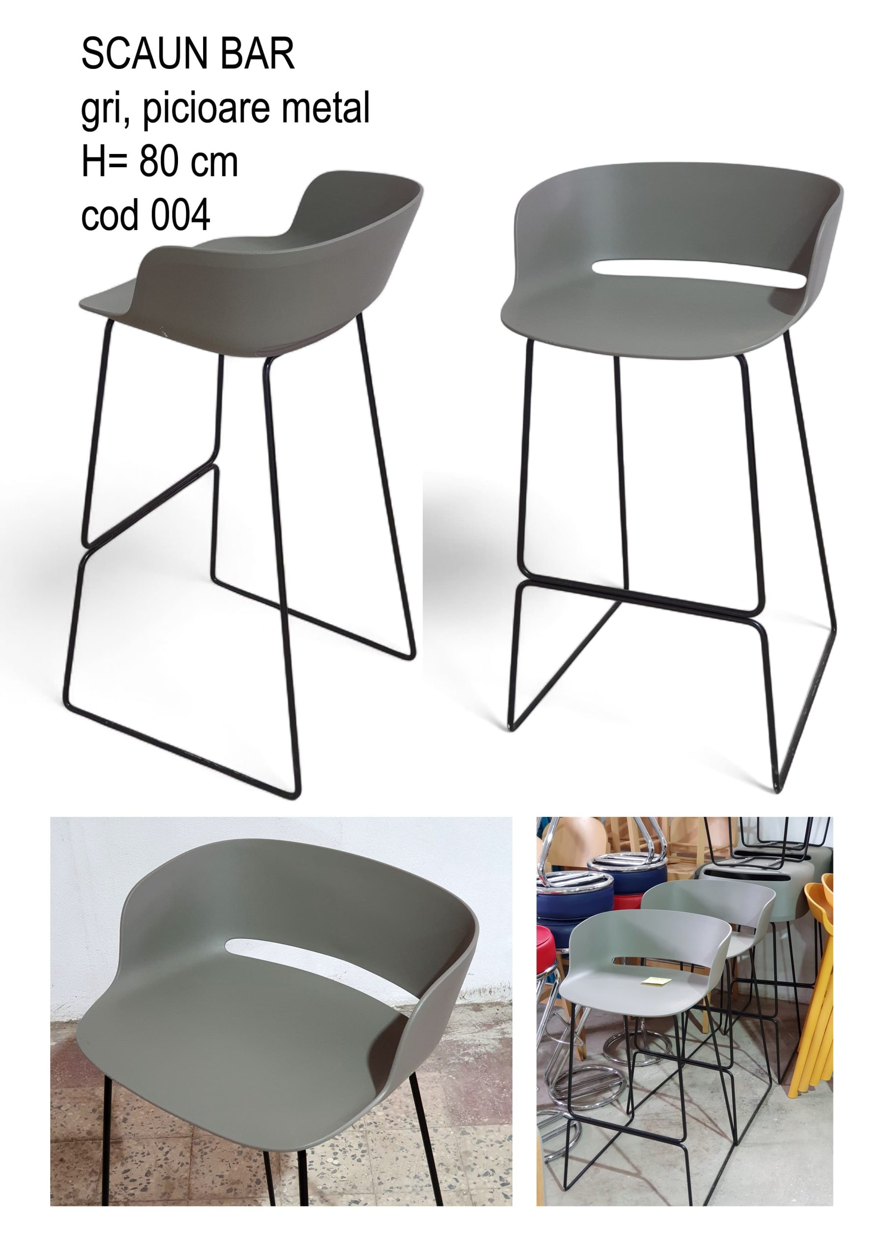 Scaunul de bar gri din material compozit, cu picioare metalice, este conceput pentru a oferi o soluție practică și elegantă în spațiile comerciale sau rezidențiale. Șezutul din compozit asigură confort sporit și întreținere facilă, fiind rezistent la uzură și utilizare zilnică.