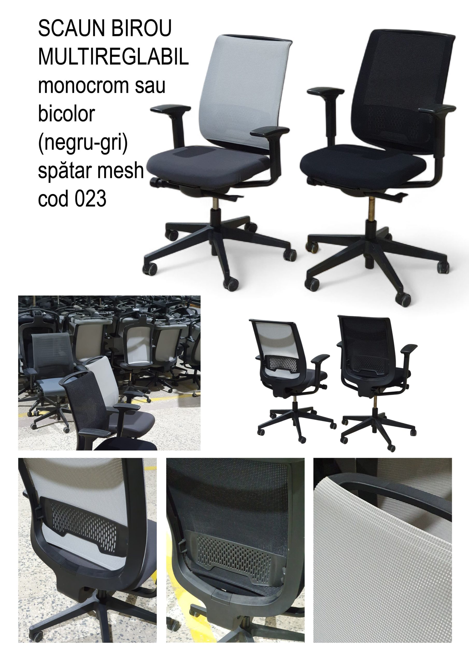 Scaun de birou multireglabil, pe role blocabile, pentru confort ergonomic și stabilitate. Ideal pentru birou, home office sau spații profesionale, cu reglaje multiple pentru șezut și spătar.