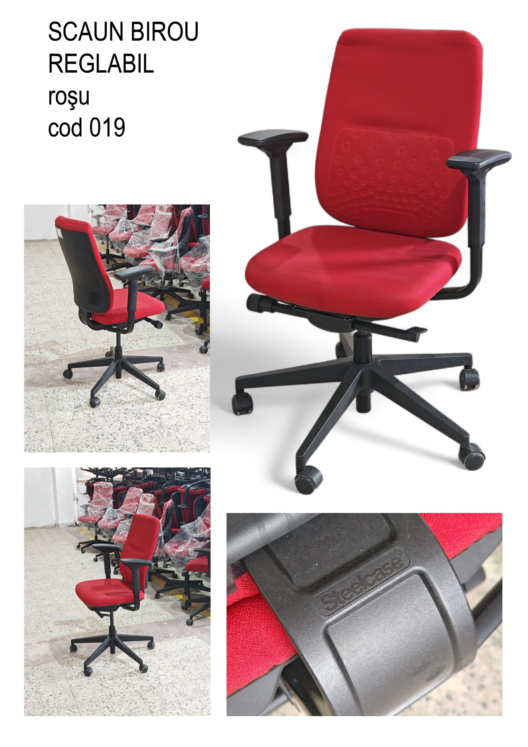 Scaunul de birou roșu multireglabil Steelcase este conceput pentru a oferi un nivel superior de confort, ergonomie și durabilitate, fiind destinat mediilor de lucru profesionale și utilizării îndelungate. Designul său modern, evidențiat de tapițeria de culoare roșie, adaugă un accent dinamic și elegant oricărui spațiu de birou.